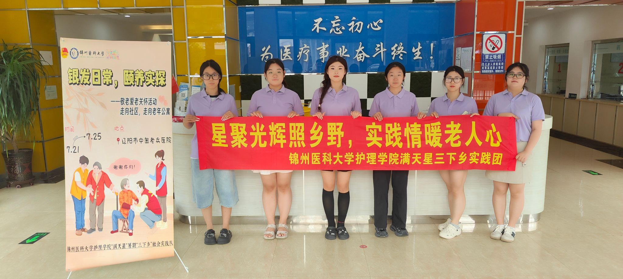 7月21日,带着“星聚光辉照乡野,实践情暖老人心”的赤诚初心,满天星三下乡实践团正式启程,将青春的足迹深深印刻在辽沈大地。在辽阳中奥老兵医院颐养中心,队员们不仅是探望者,更是红色血脉的倾听者与传承者。他们俯身于老人床前,细询饮食起居,凝视床头药盒,更紧握那布满历史褶皱的双手,聆听烽火岁月的回响。家常的问候化作暖流,眼神的交汇传递敬意,让“情暖老人心”从口号升华为对革命功臣最崇高的致敬与最温暖的守护,生动诠释了新时代青年赓续红色基因的坚定自觉。